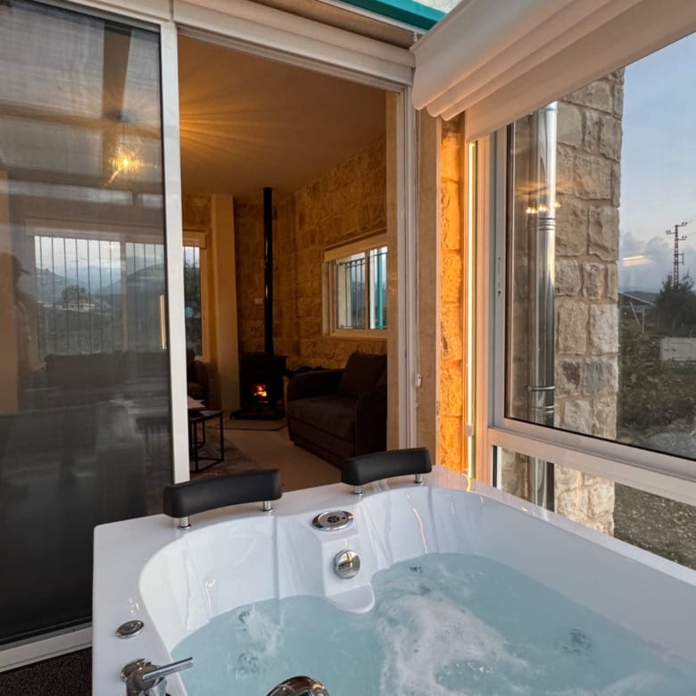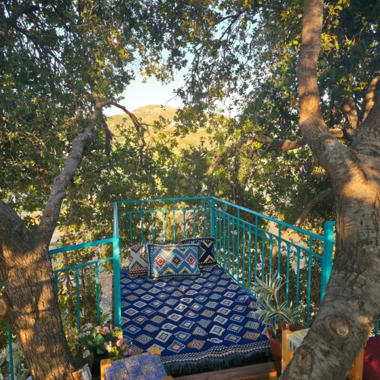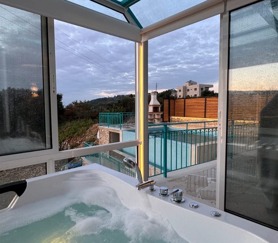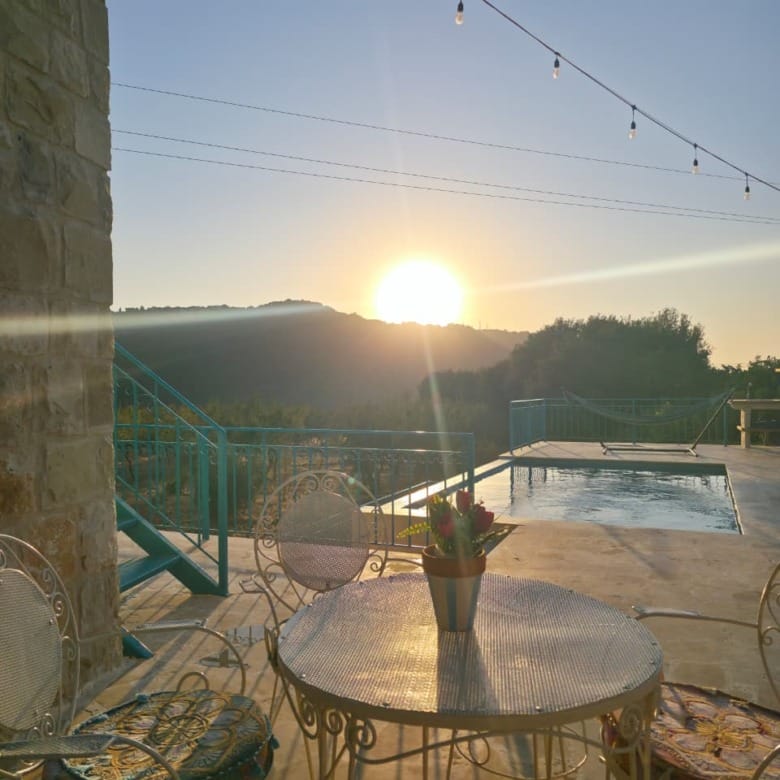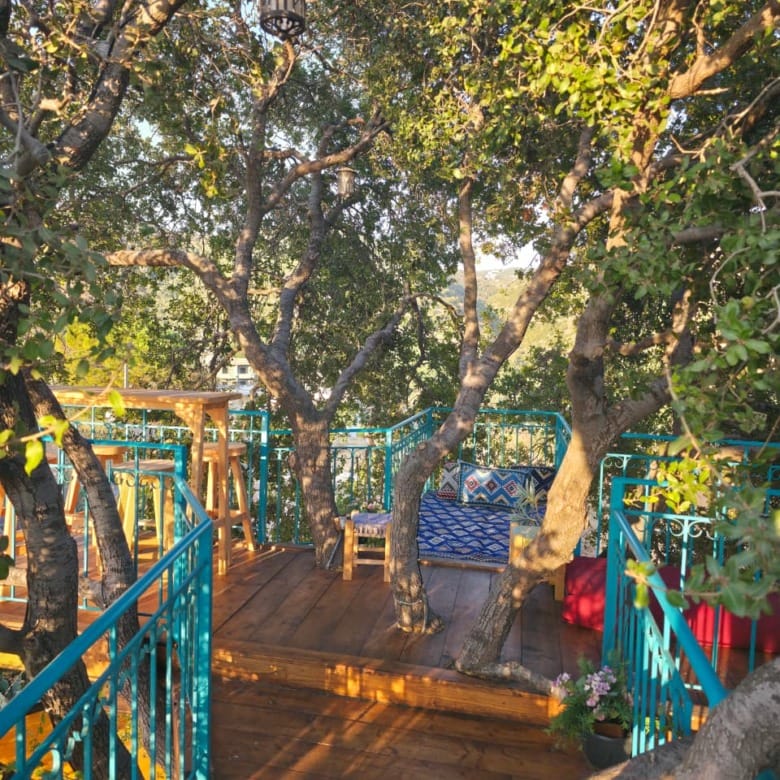 This Sghar Batroun guesthouse is perfect for couples, families, small groups, and private outdoor events. Surrounded by oak trees and fresh mountain air, the property includes a private treehouse, a swimming pool, a jacuzzi room with views, and multiple cozy lounges.