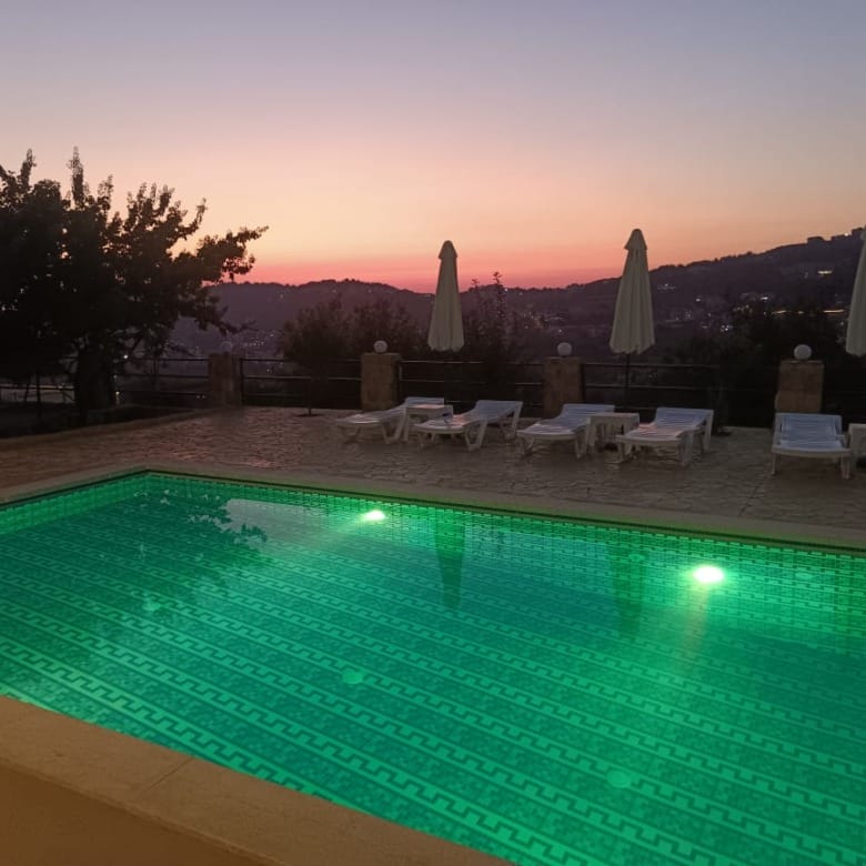 This Bhamdoun chalet with a private pool features two fully equipped bungalows, each accommodating up to 4 guests. The entire property fits 8 guests in total, making it ideal for families and groups.