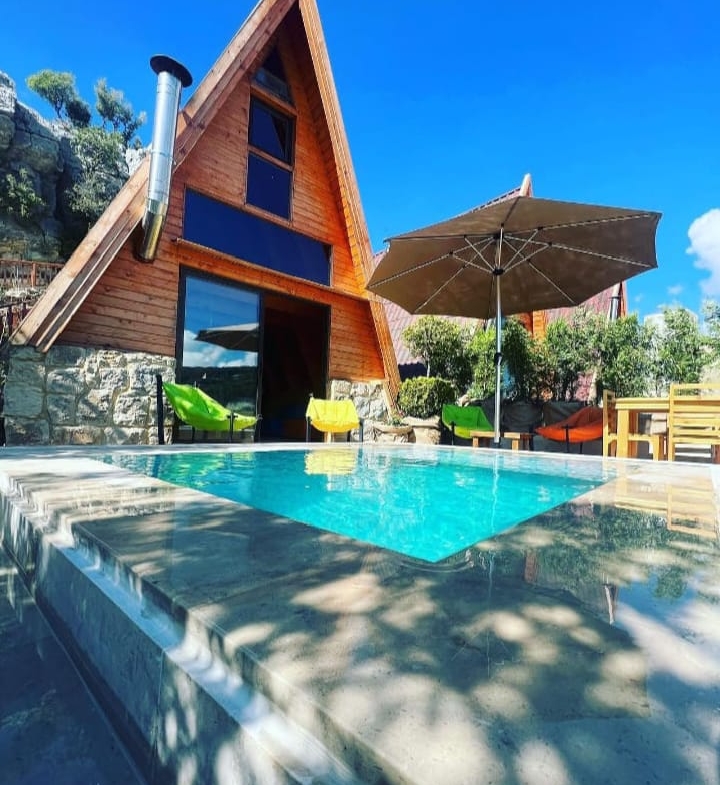 Accommodation: Three beautifully designed A-shaped bungalows fully integrated with nature — ideal for couples or small groups seeking peace and privacy.