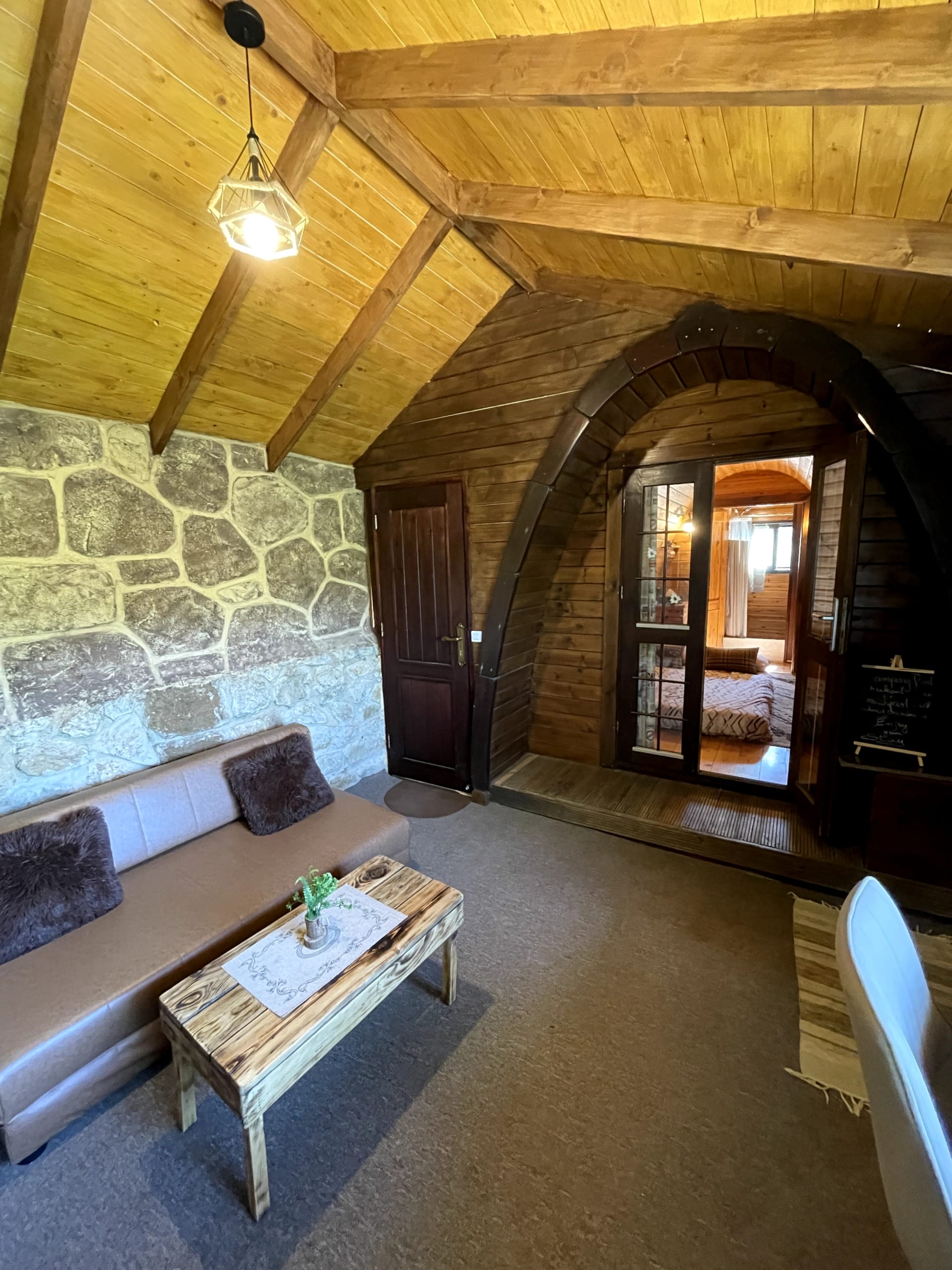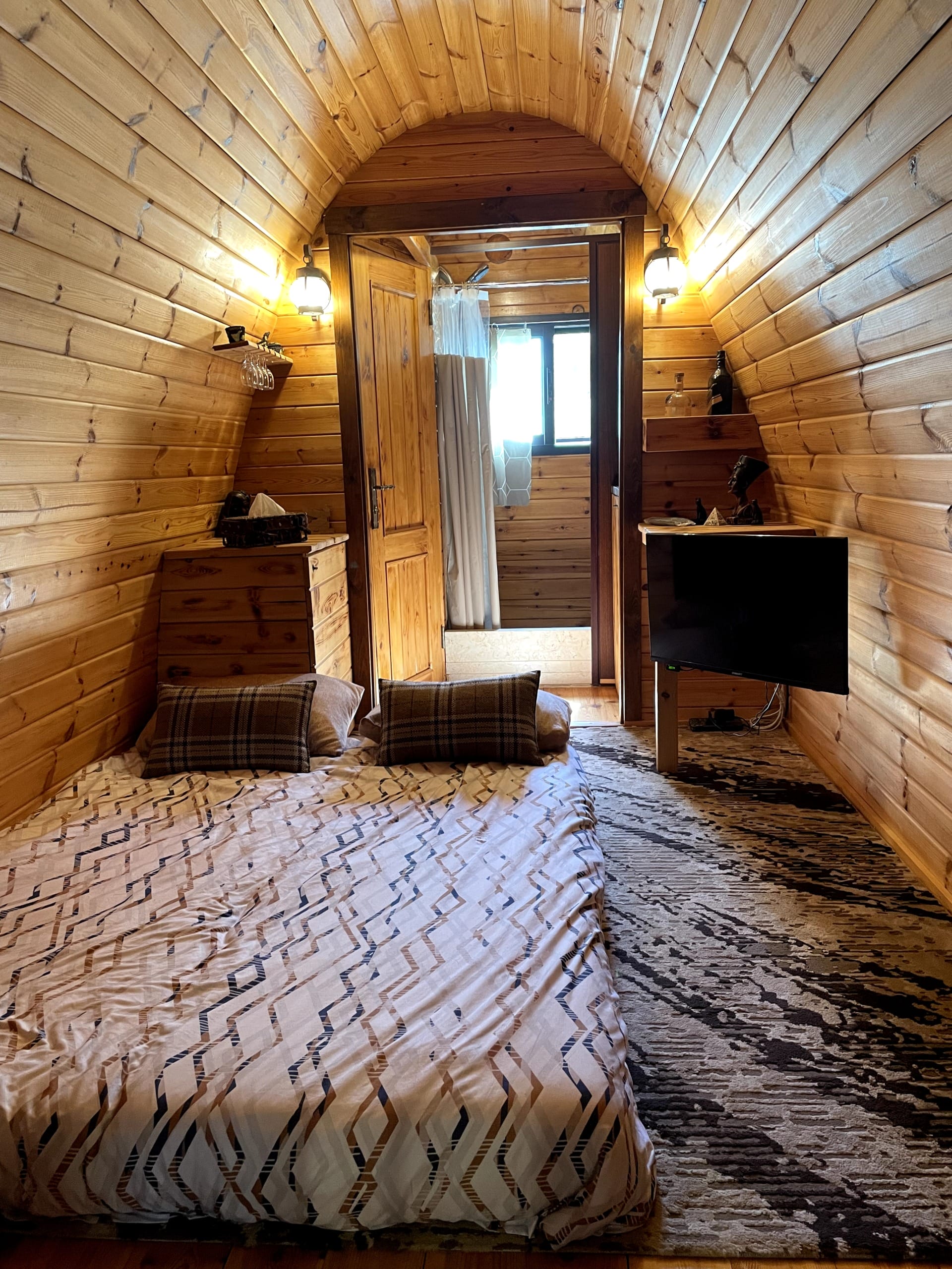Relax in a cozy wooden bungalow designed with rustic, camping-style charm. You’ll enjoy the warmth and comfort of a cabin, while staying fully immersed in nature — the perfect mix of peace and style.