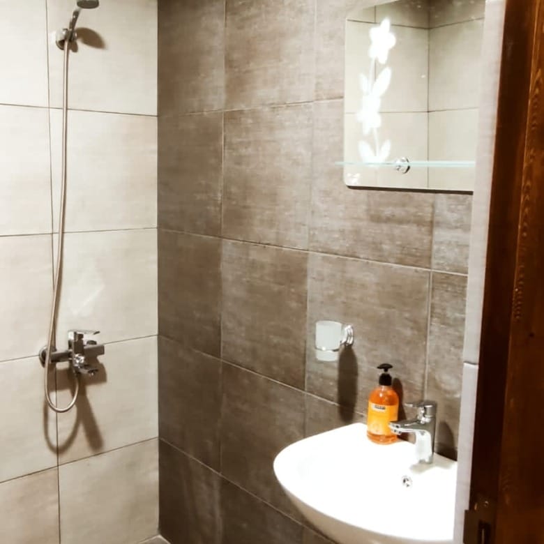 1 modern bathroom 🚿 with hot water and essential amenities, making your stay in the Cozy Mountain Chalet C Lebanon very comfortable.