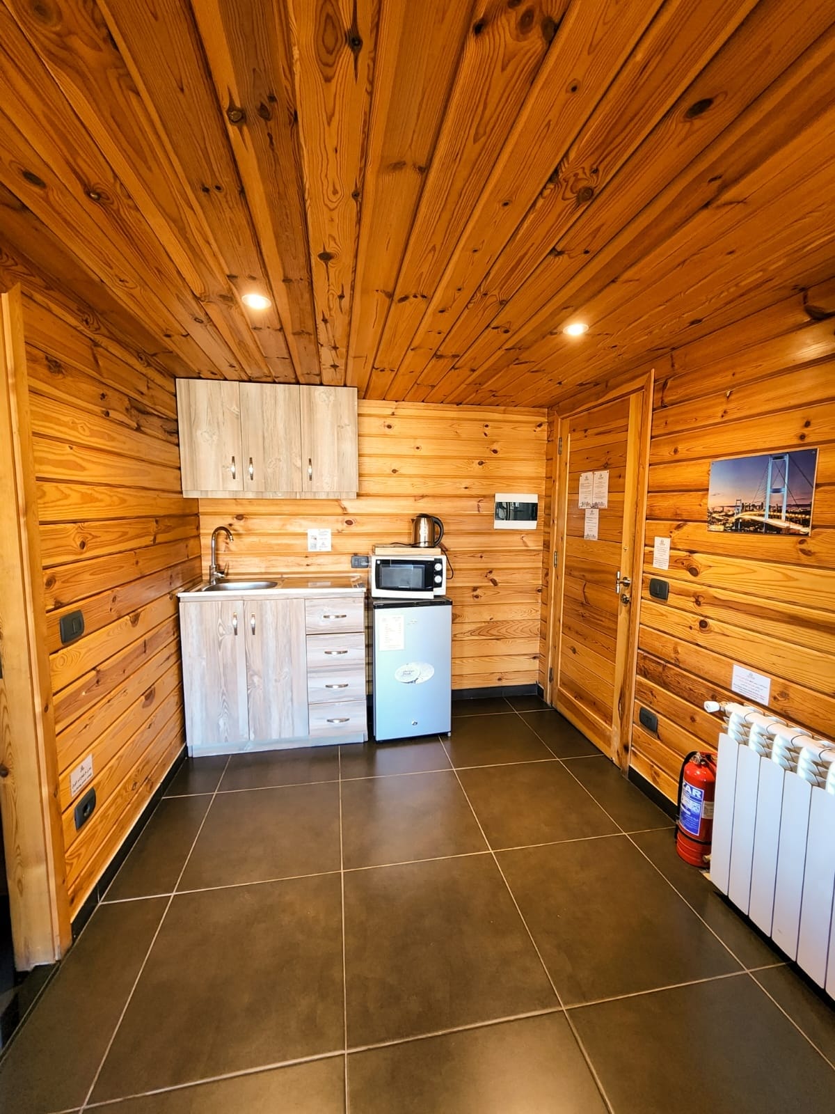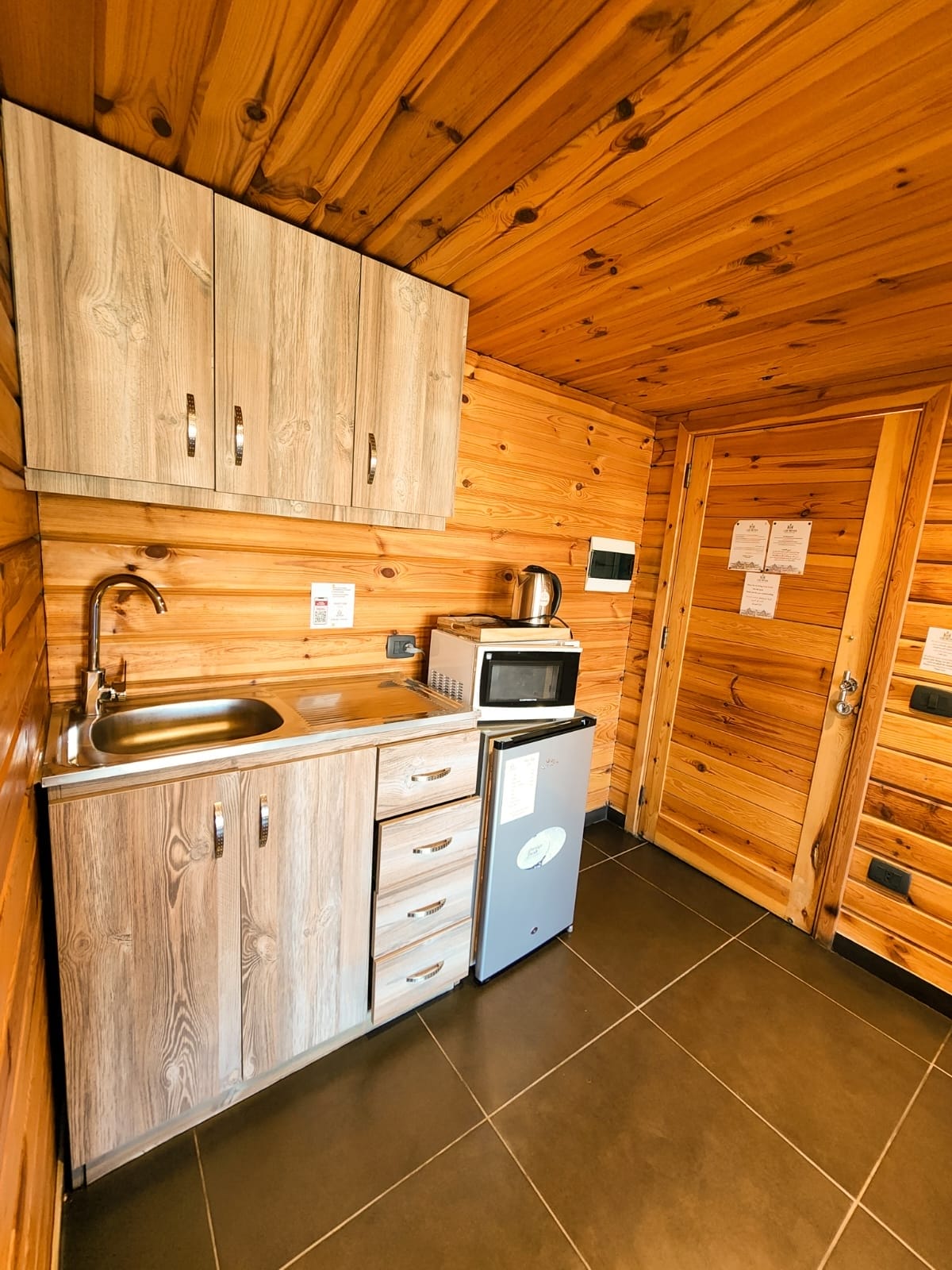Kettle, microwave, and mini refrigerator for convenience