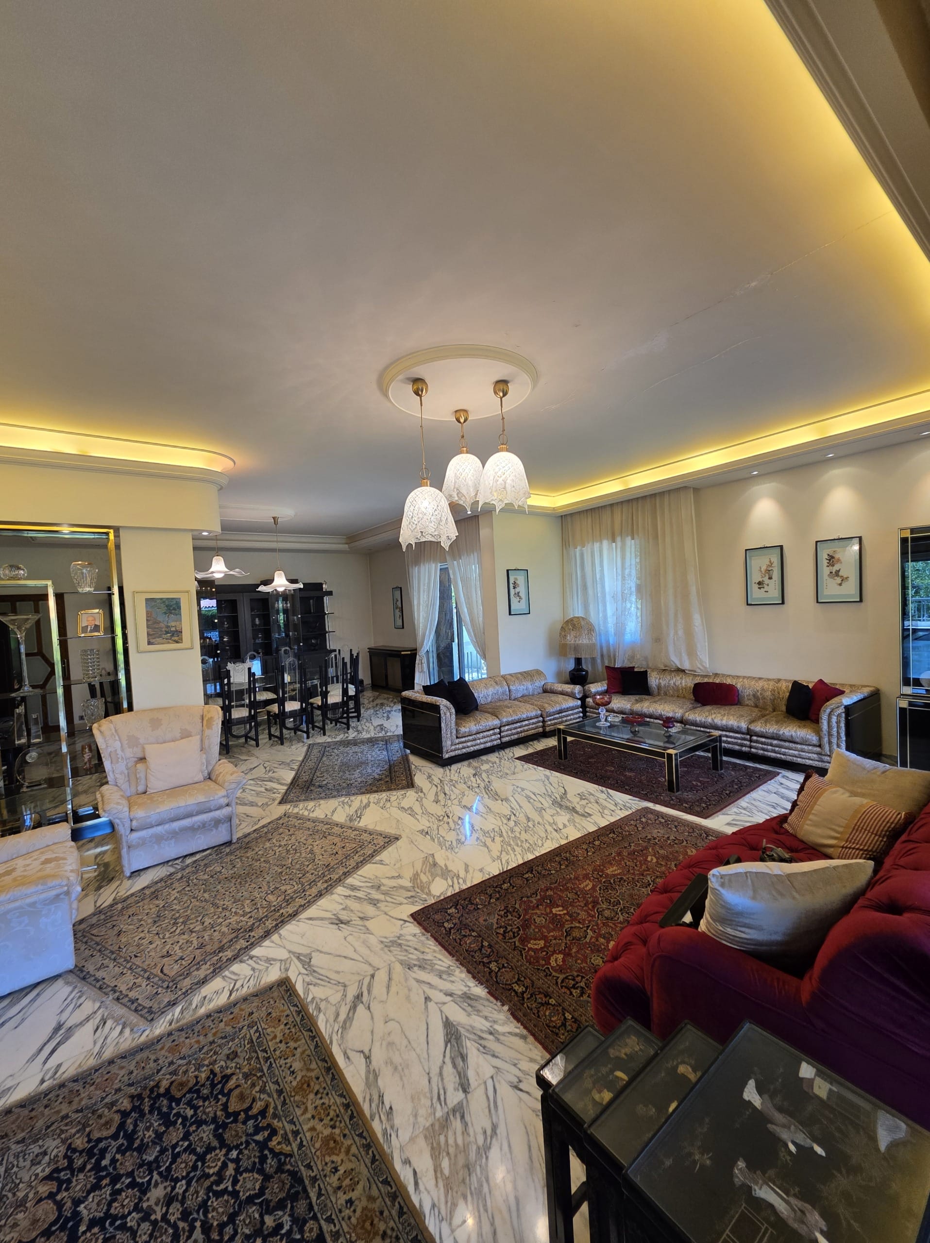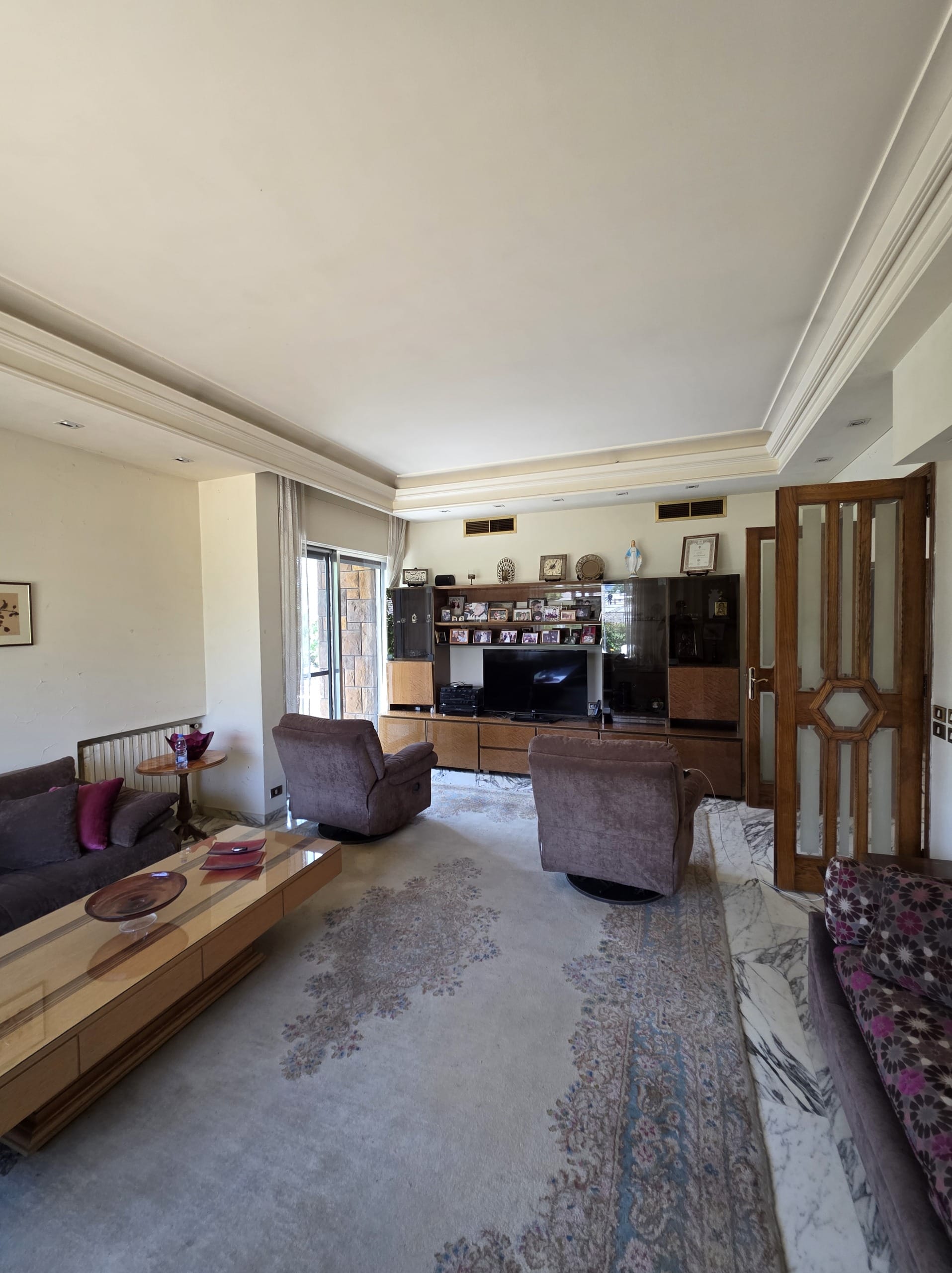 Relax in the spacious living area around the fireplace 🔥. Whether it’s winter ski season 🎿 or summer hiking adventures 🚶♀️, this Hrajel Faraya chalet creates unforgettable memories with friends and family. 💫