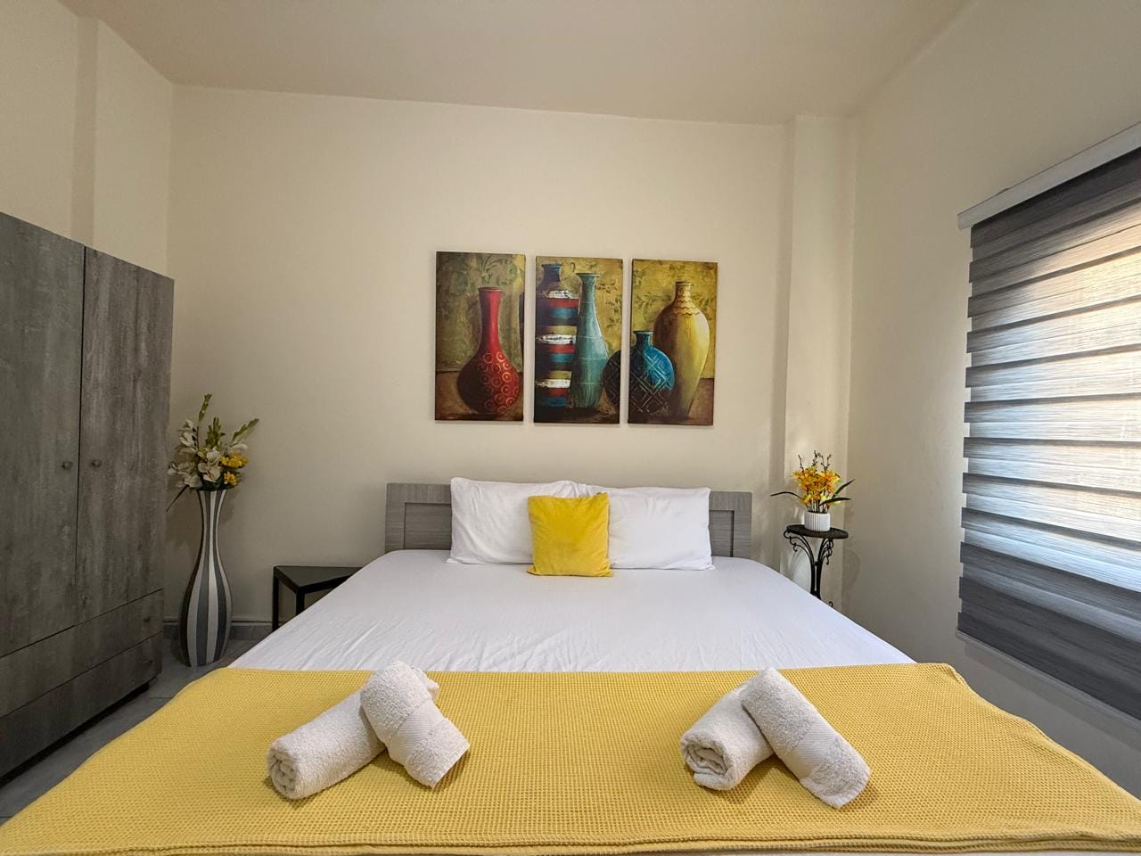 Room 101 Zinnia is thoughtfully designed to host 2 guests comfortably. The room features air conditioning for a cool stay, hot water available 24/24, and a smart TV for entertainment. Guests enjoy a peaceful ambiance, plush towels, and access to a washing machine, making it convenient for both short and long stays.