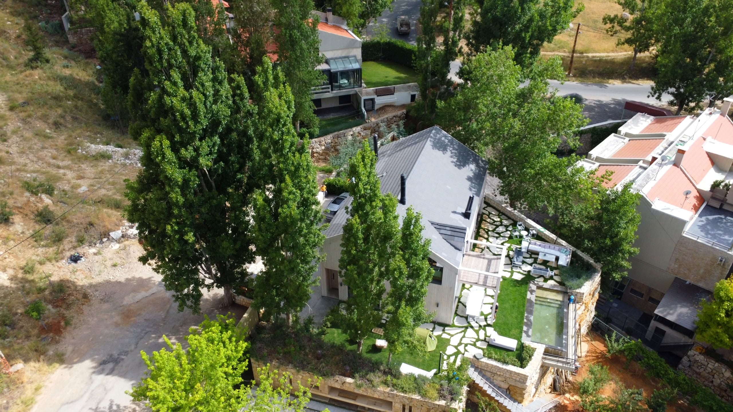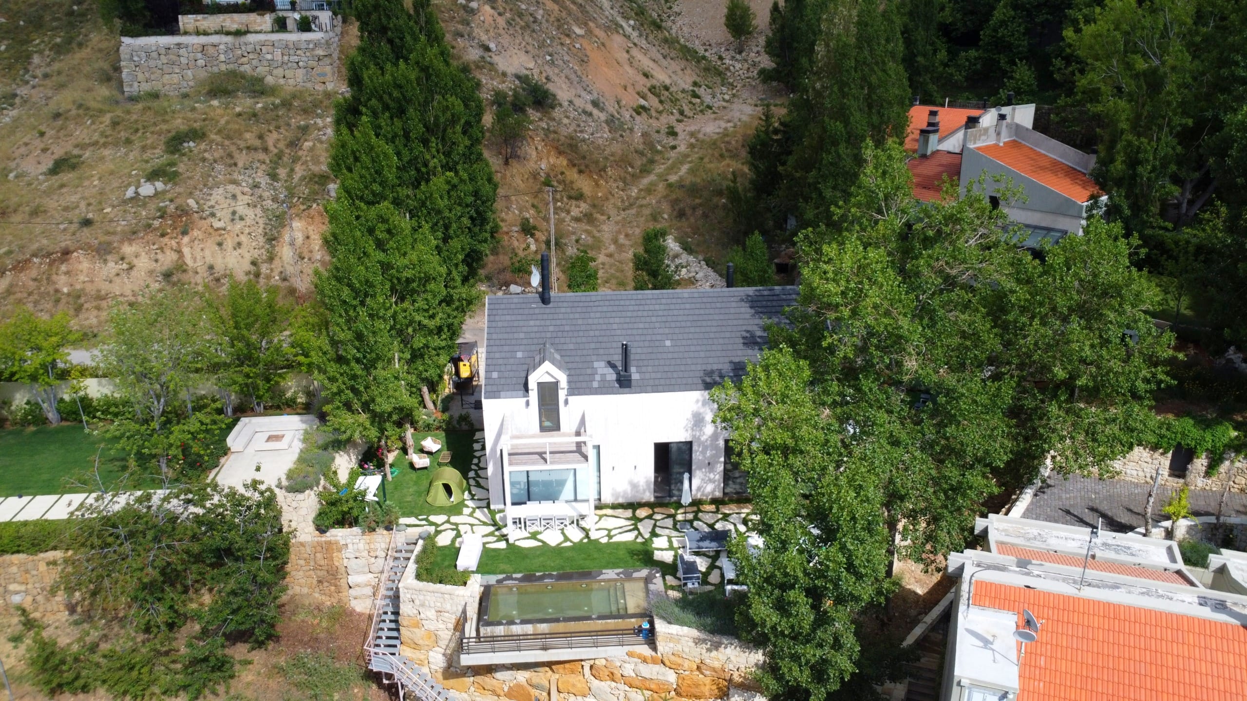 Situated in a prime location in Faqra, Lebanon, the villa is just minutes away from popular restaurants, cafés, supermarkets, and local attractions. Guests can enjoy the convenience of nearby amenities while still benefiting from complete privacy and a serene mountain ambiance.