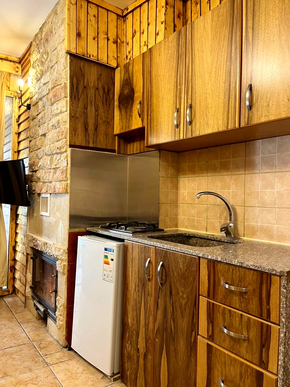 This one-bedroom mountain chalet comfortably accommodates up to 4 guests, with flexibility for 5 persons when needed.