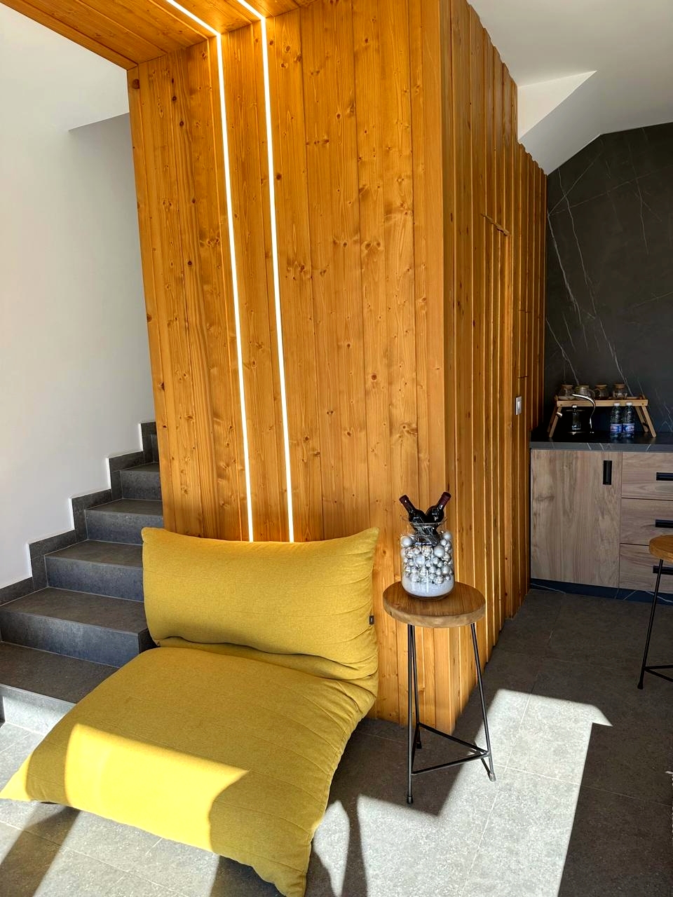 Prepare meals in the modern, fully equipped kitchen, complete with all essentials. Warm up after a snowy day in the indoor Jacuzzi or enjoy the peaceful atmosphere on your private terrace overlooking the majestic Faraya mountains. A true Faraya Luxury Cabin With Jacuzzi experience is ensured with hydro stove heating that keeps all radiators warm, guaranteeing a cozy stay year-round.