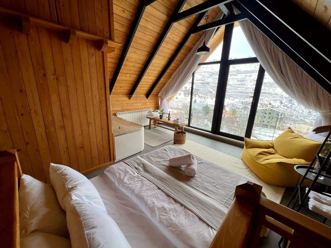 Escape to a serene Faraya chalet in Lebanon and enjoy an unforgettable mountain getaway. Nestled in the snowy peaks of Faraya, this charming chalet combines comfort, privacy, and breathtaking views—perfect for couples, friends, or small families looking for a Faraya Luxury Cabin With Jacuzzi experience.