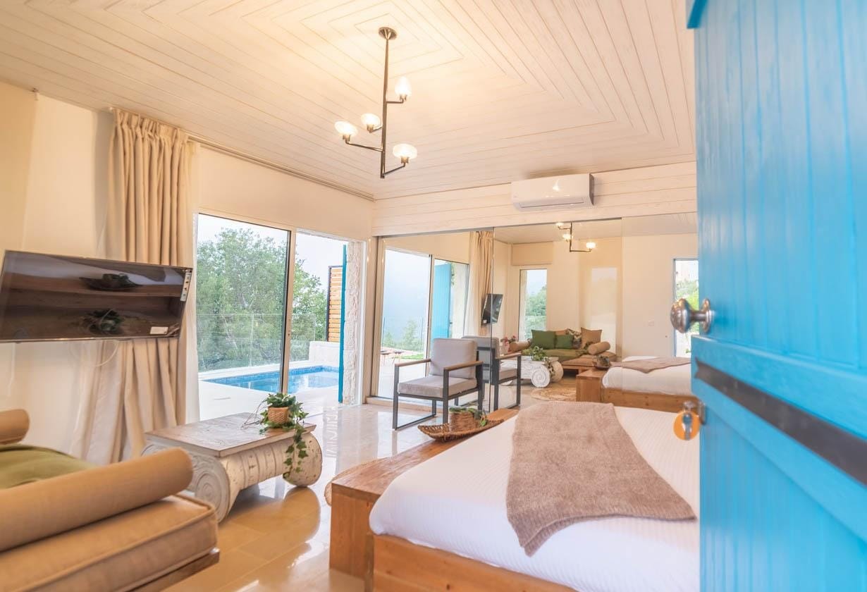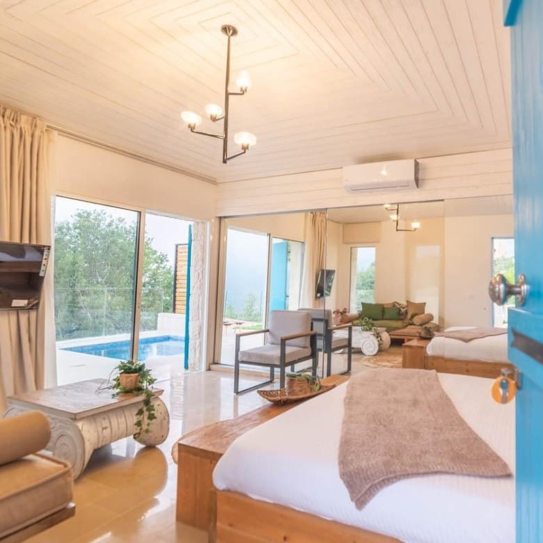Enjoy peaceful moments in the garden, unwind in the warm heated pool, or relax indoors surrounded by serene mountain vibes. Le Chêne Villa in Fatre offers the perfect blend of nature, comfort, and simplicity—a top choice for a relaxing mountain getaway in Lebanon. 🌄