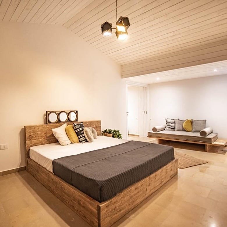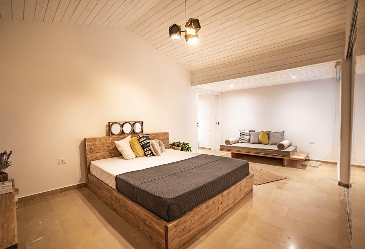 The sleeping arrangement allows flexibility for families or small groups while maintaining privacy and comfort in this cozy mountain villa in Byblos.
