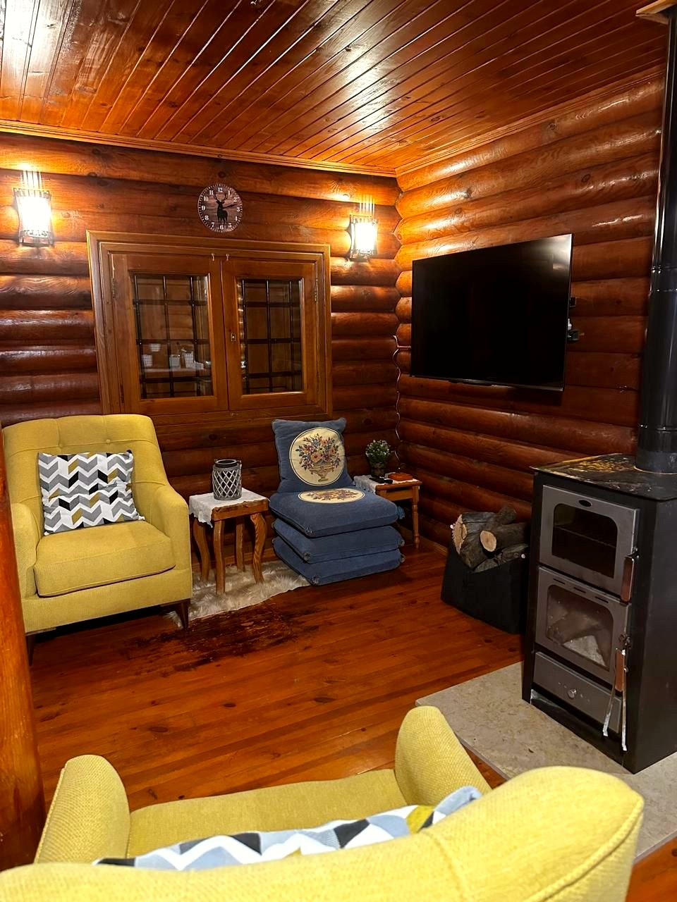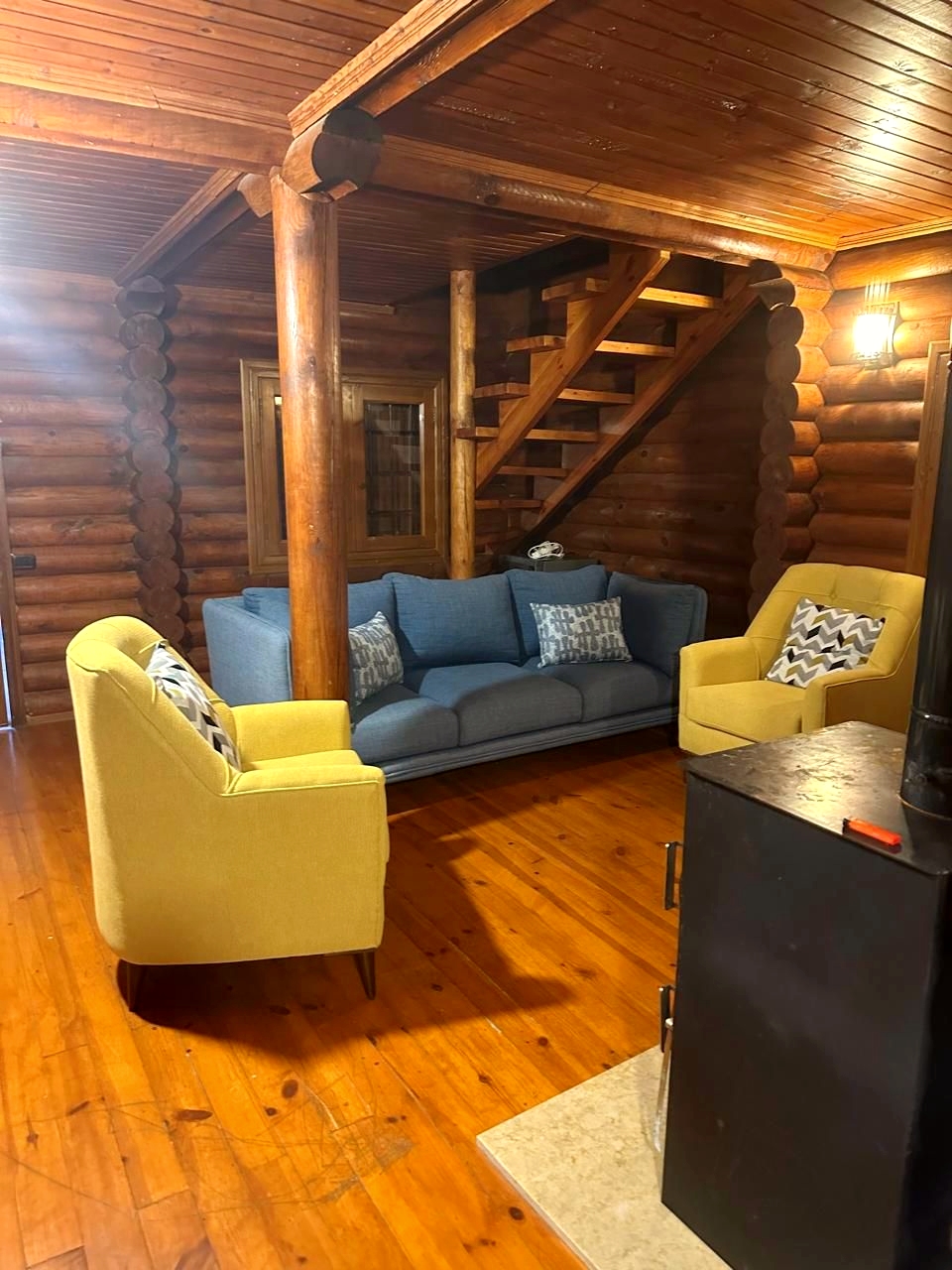 Cozy living room with a wooden stove