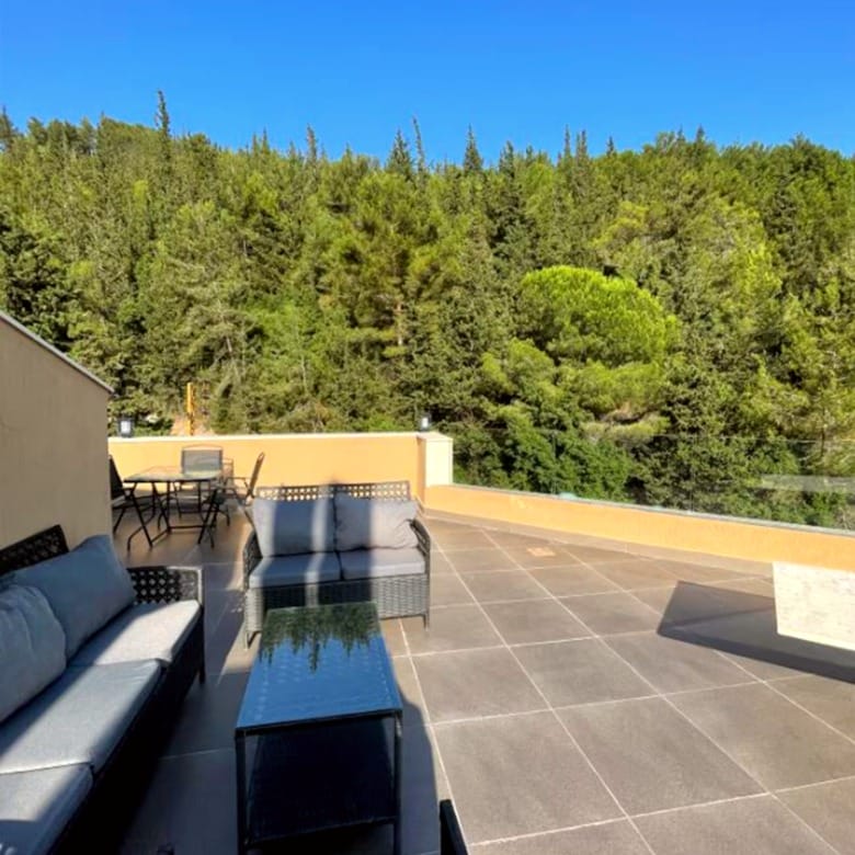 Step onto the expansive private terrace, perfect for morning meditation, quiet afternoons, or watching the sunset with friends. The terrace includes an outdoor Jacuzzi, BBQ area, and comfortable seating, ideal for social gatherings or solitary reflection. Nearby trees and the sound of the sea enhance the sense of calm. For those who want to immerse in true alfresco living, enjoying Adma’s landscape from a penthouse with 2 bedrooms is hard to beat.
