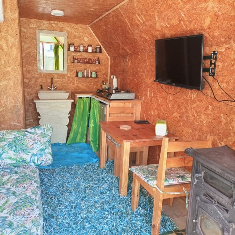 - 1 double bed + 2 sofa beds (sleeps 4–5 guests)