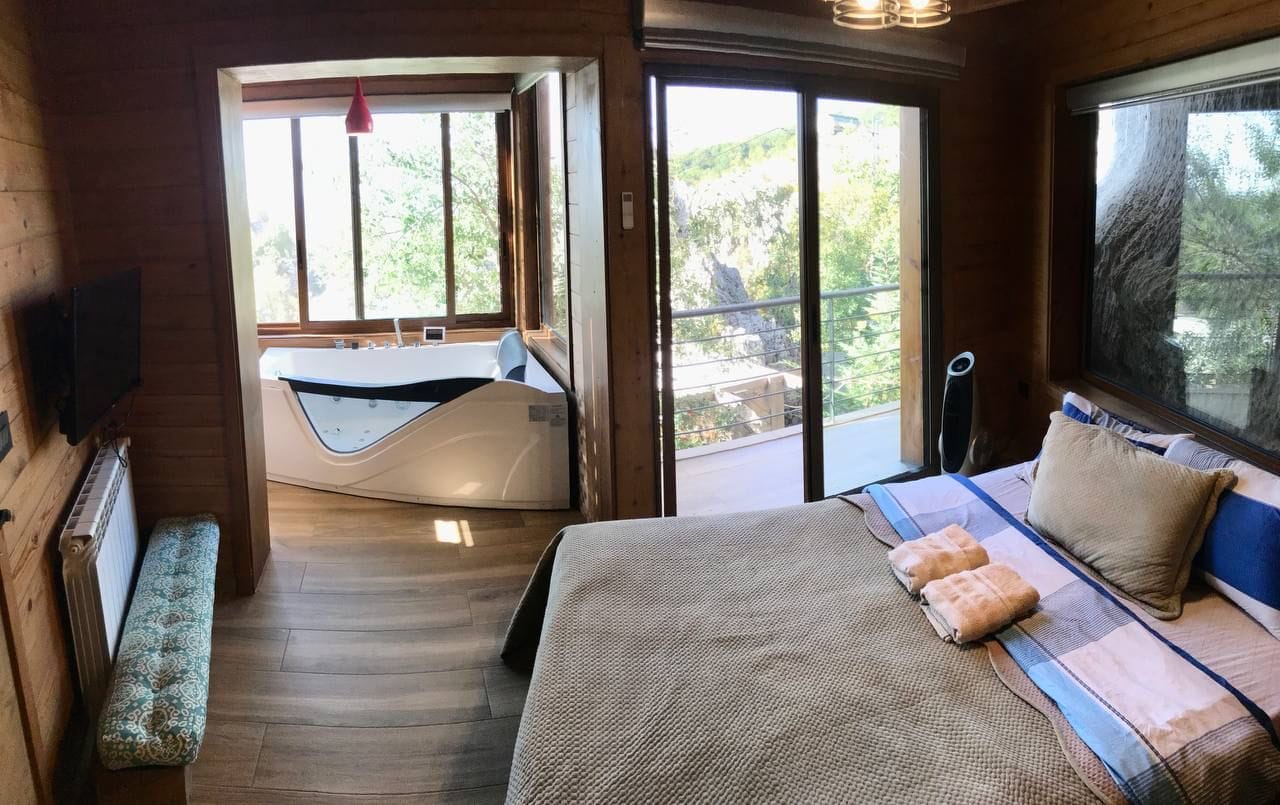 This duplex chalet in Zaarour for couples is designed for privacy, comfort, and a truly relaxing experience. Enjoy cozy evenings in the jacuzzi, relax by the fireplace, or savor meals on the terrace. With its mountain charm, modern amenities, and romantic atmosphere, this Zaarour chalet provides the perfect couple’s retreat.